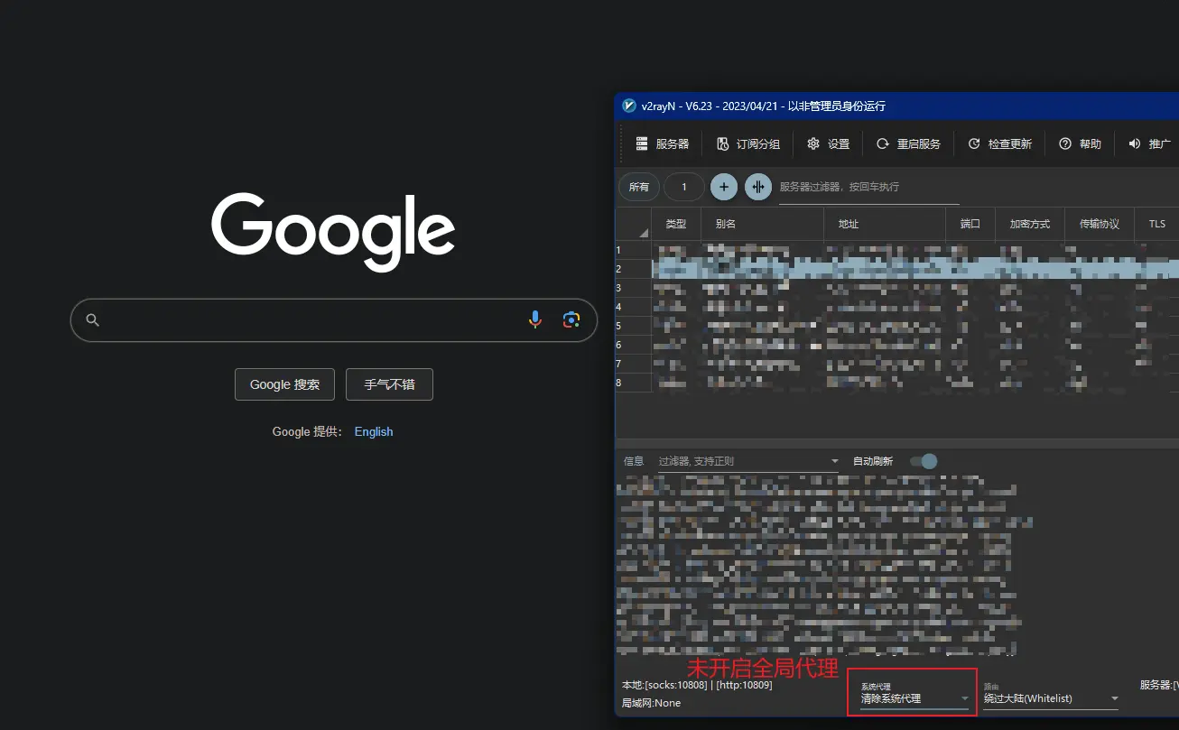 按上图配置好后,你访问外网时v2ray就可以不用开启全局代理了