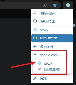 如果你访问一个国外网站不在规则中需要走代理才能访问,可以自己手动调整(假设google.com不在规则中)