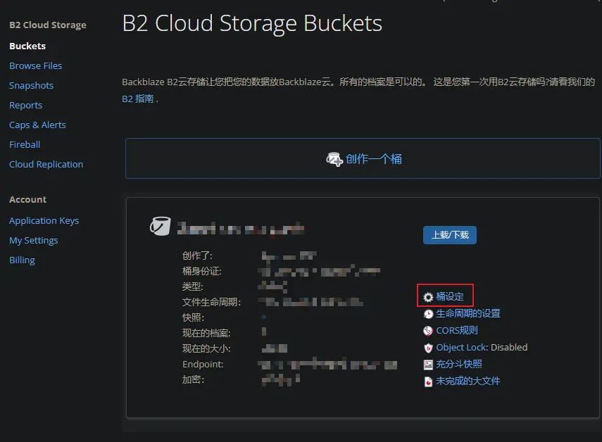1.创建、配置BackBlaze(B2)的bucket