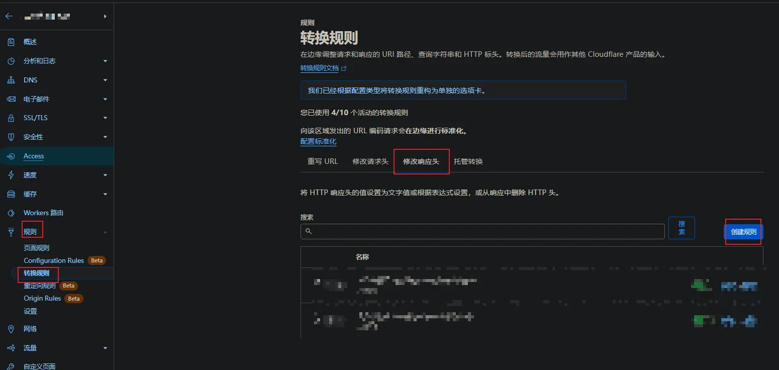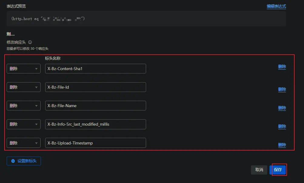 创建、保存转换规则-修改响应头 删除: