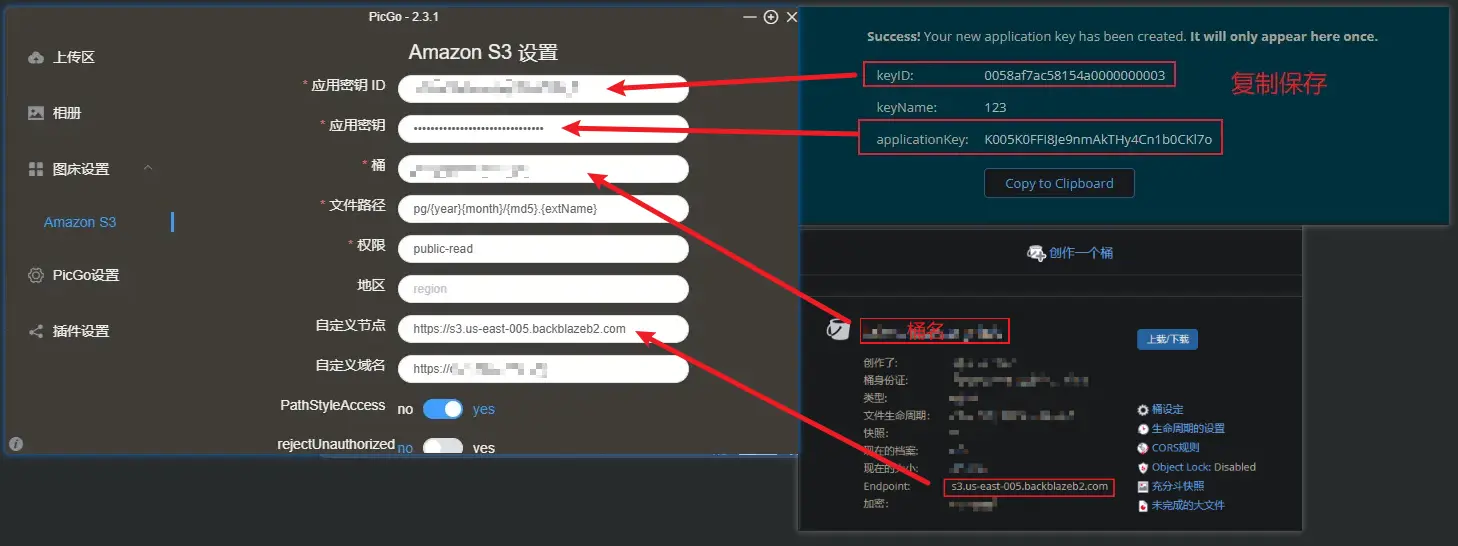 进入图床设置-Amazon S3按图修改配置