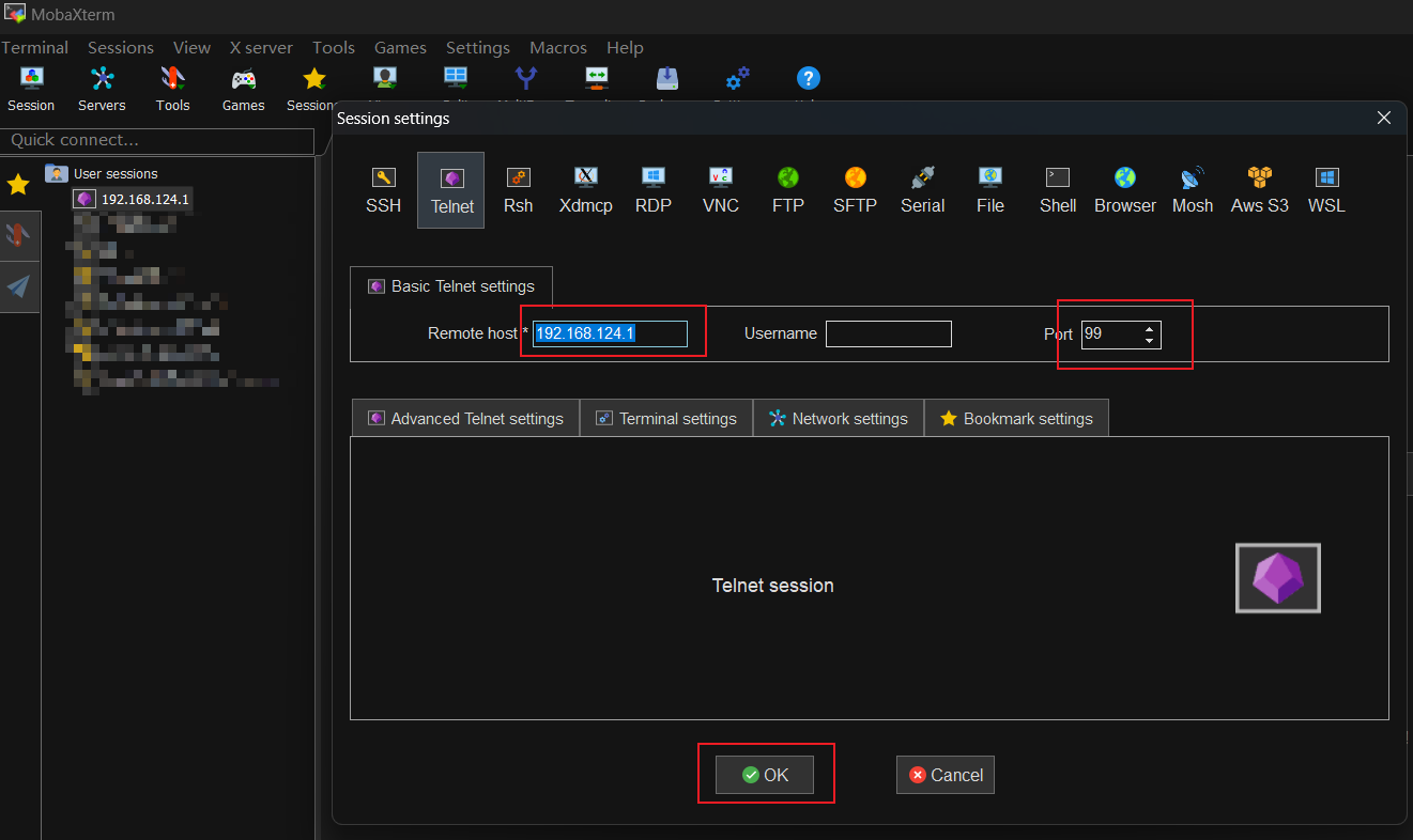 这一步请确保路由器能正常联网。NX30 Pro 默认开启了 telnet,默认的地址是 192.168.124.1,用户名是 H3C(全大写),密码就你设置的路由器后台密码,端口是 99。