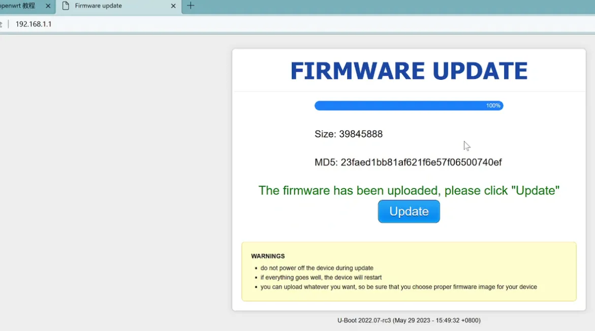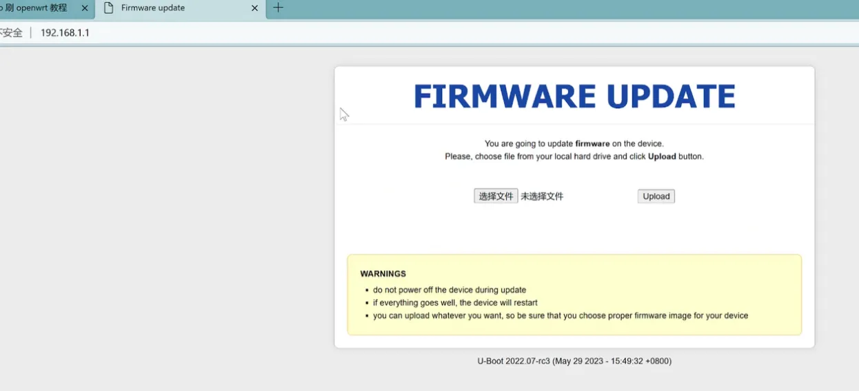 现在浏览器打开 192.168.1.1 就能打开 uboot 后台。