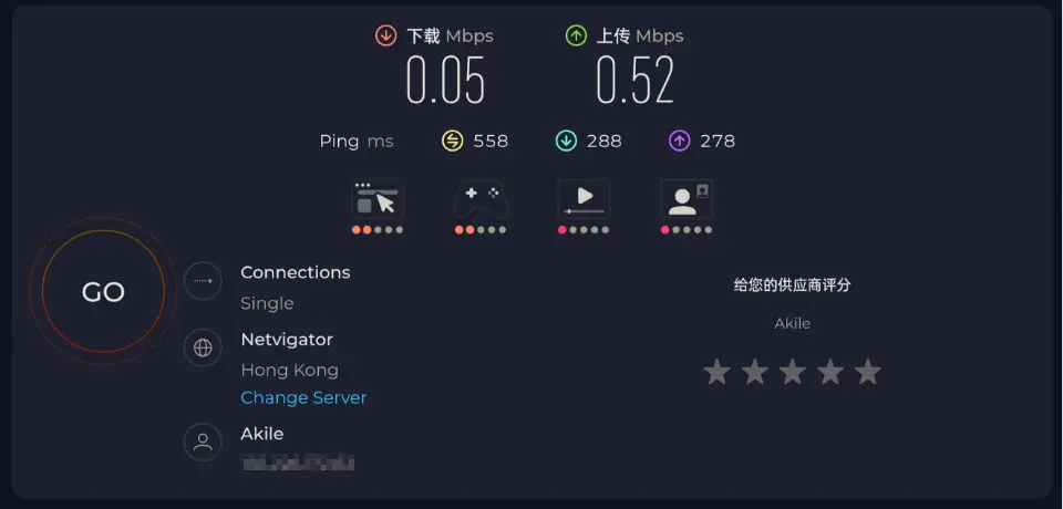 NodeQuality 💻基本信息 1 2 3 4 5 6 7 8 9 10 11 12 13 14 15 16 17 18 19 20 21 22 23 24 25 26 27 28 29 30 31 32 33 34 35 36 37 38 39 40 41 42 43 44 45 46 47 48 49 50 51 52 Basic System Information: --------------------------------- Uptime : 1 days, 16 hours, 5 minutes Processor : Intel(R) Xeon(R) Gold 6138 CPU @ 2.00GHz CPU cores : 1 @ 1995.312 MHz AES-NI : ✔ Enabled VM-x/AMD-V : ✔ Enabled RAM : 978.9 MiB Swap : 522.0 MiB Disk : 10.0 GiB Distro : Debian GNU/Linux 12 (bookworm) Kernel : 5.10.0-34-cloud-amd64 VM Type : STANDARD PC (I440FX + PIIX, 1996) IPv4/IPv6 : ✔ Online / ❌ OfflineIPv4 Network Information: --------------------------------- ISP : Akile LTD ASN : AS61112 AKILE LTD Host : Akile LTD Location : Hong Kong, Kowloon () Country : Hong Kongfio Disk Speed Tests (Mixed R/W 50/50) (Partition -): --------------------------------- Block Size | 4k (IOPS) | 64k (IOPS) ------ | --- ---- | ---- ---- Read | 101.46 MB/s (25.3k) | 102.34 MB/s (1.5k) Write | 101.73 MB/s (25.4k) | 102.88 MB/s (1.6k) Total | 203.20 MB/s (50.7k) | 205.23 MB/s (3.2k) | | Block Size | 512k (IOPS) | 1m (IOPS) ------ | --- ---- | ---- ---- Read | 97.73 MB/s (190) | 96.52 MB/s (94) Write | 102.92 MB/s (201) | 102.95 MB/s (100) Total | 200.66 MB/s (391) | 199.47 MB/s (194)Geekbench 5 Benchmark Test: --------------------------------- Test | Value | Single Core | 430 Multi Core | 447 Full Test | https://browser.geekbench.com/v5/cpu/23455976 SysBench CPU 测试 (Fast Mode, 1-Pass @ 5sec) --------------------------------- 1 线程测试(单核)得分: 789 Scores SysBench 内存测试 (Fast Mode, 1-Pass @ 5sec) --------------------------------- 单线程读测试: 16138.48 MB/s 单线程写测试: 11637.17 MB/s