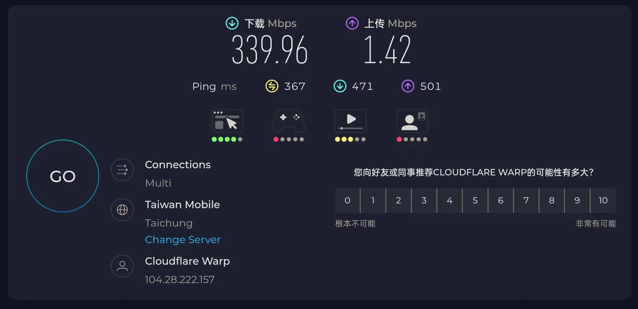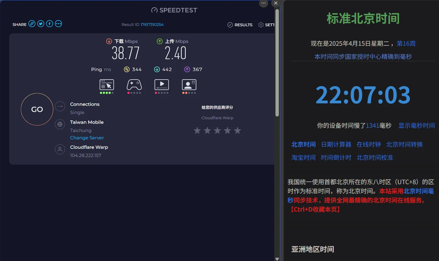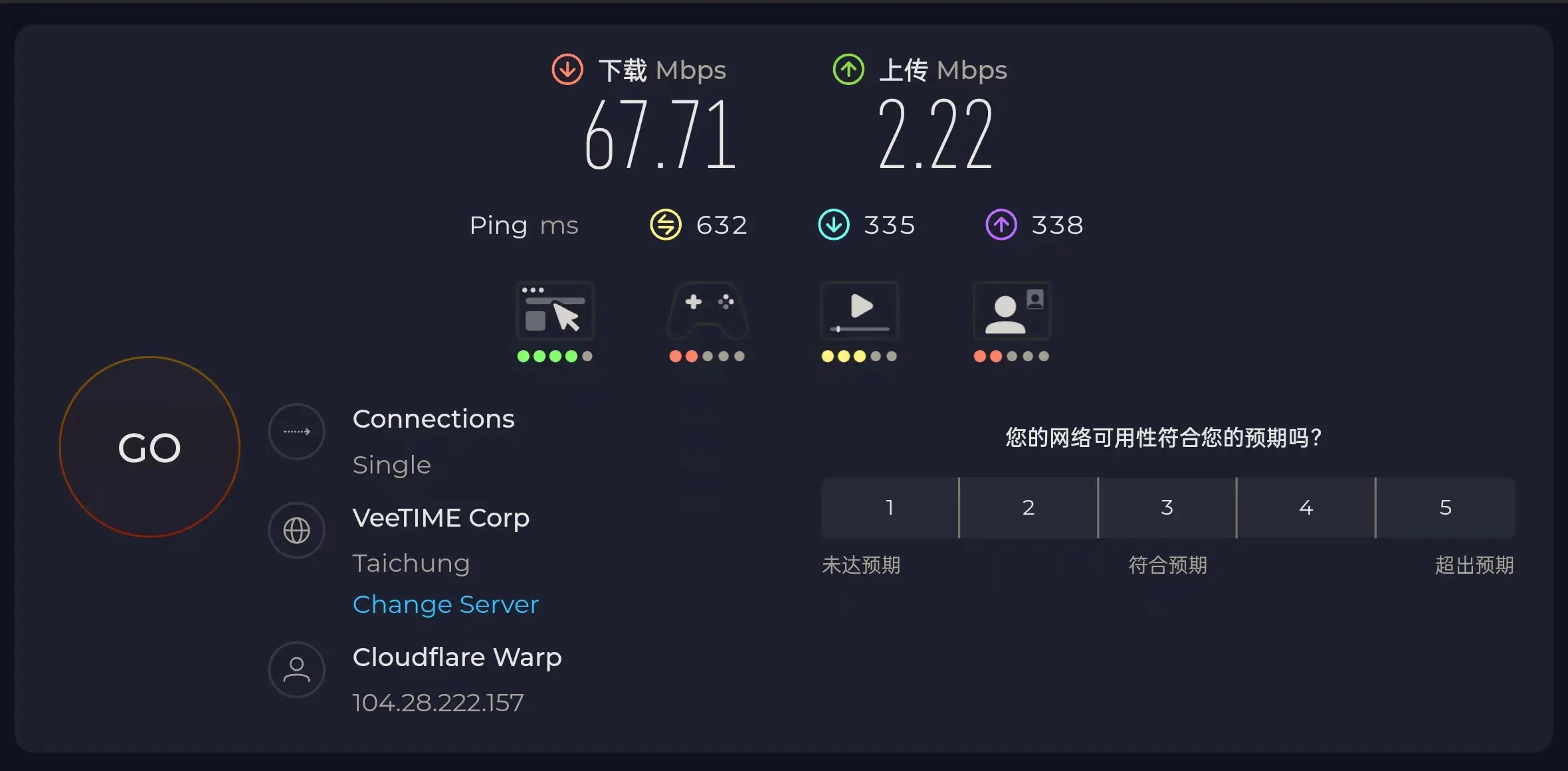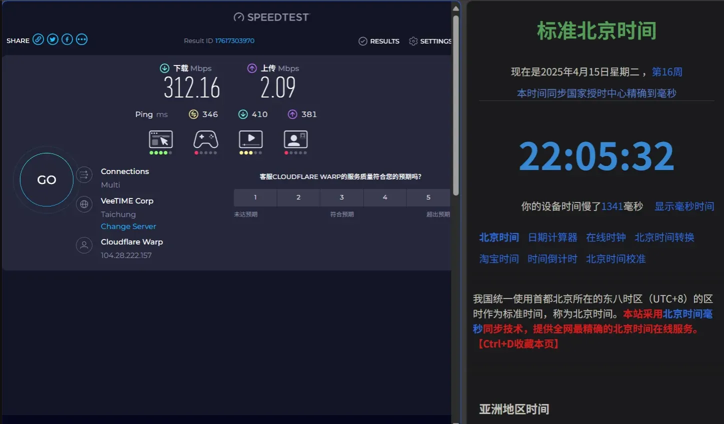 | -------------------------------------VPS融合怪测试------------------------------------- 版本:v0.1.31 测评频道: https: Go项目地址:https: Shell项目地址:https: --------------------------------------系统基础信息-------------------------------------- CPU 型号 : Intel(R) Xeon(R) CPU E5-2680 v4 @ 2.40GHz CPU 数量 : 1 Virtual CPU(s) CPU 缓存 : L1: 896 KB / L2: 3 MB / L3: 35 MB AES-NI : ✔️ Enabled VM-x/AMD-V/Hyper-V : ✔️ Enabled 内存 : 71.55 MB / 1.00 GB 气球驱动 : ❌ Undetected 内核页合并 : ❌ Undetected 虚拟内存 Swap : [ no swap partition or swap file detected ] 硬盘空间 : 4.29 GB / 9.75 GB 启动盘路径 : /dev/mapper/pve-vm--4294--disk--0 系统 : debian 11.7 [x86_64] 内核 : 6.5.11-4-pve 系统在线时间 : 0 days, 01 hours, 15 minutes 时区 : UTC 负载 : 0.15 / 0.24 / 0.17 虚拟化架构 : LXC NAT类型 : Symmetric TCP加速方式 : bbr IPV4 ASN : AS13335 CLOUDFLARENET IPV4 Location : Taichung / Taichung City / Taiwan IPV4 Active IPs : 0/256 (subnet /24) 2896/1048576 (prefix /12) IPV6 ASN : AS51847 Nearoute Limited IPV6 Location : Hong Kong / Hong Kong / Taiwan IPv6 子网掩码 : /64 --------------------------------CPU测试-通过sysbench测试-------------------------------- 1 线程测试(单核)得分: 829.58 --------------------------------内存测试-通过sysbench测试--------------------------------- 单线程顺序写速度: 11903.10 MB/s(12.48K IOPS, 5s) 单线程顺序读速度: 15829.80 MB/s(16.60K IOPS, 5s) -----------------------------------硬盘测试-通过dd测试------------------------------------ 测试路径 块大小 直接写入(IOPS) 直接读取(IOPS) /root 100MB-4K Block 42.0 MB/s(10.25K IOPS, 2.50s) 39.4 MB/s(9.62K IOPS, 2.66s) /root 1GB-1M Block 620 MB/s(591.20 IOPS, 1.69s) 408 MB/s(388.68 IOPS, 2.57s) -----------------------------------硬盘测试-通过fio测试----------------------------------- 测试路径 块大小 读测试(IOPS) 写测试(IOPS) 总和(IOPS) /tmp 4k 96.84 MB/s(24.2k) 97.09 MB/s(24.3k) 193.93 MB/s(48.5k) /tmp 64k 391.18 MB/s(6112) 393.24 MB/s(6144) 784.42 MB/s(12.3k) /tmp 512k 386.62 MB/s(755) 407.16 MB/s(795) 793.77 MB/s(1550) /tmp 1m 585.73 MB/s(572) 624.74 MB/s(610) 1.21 GB/s(1182)