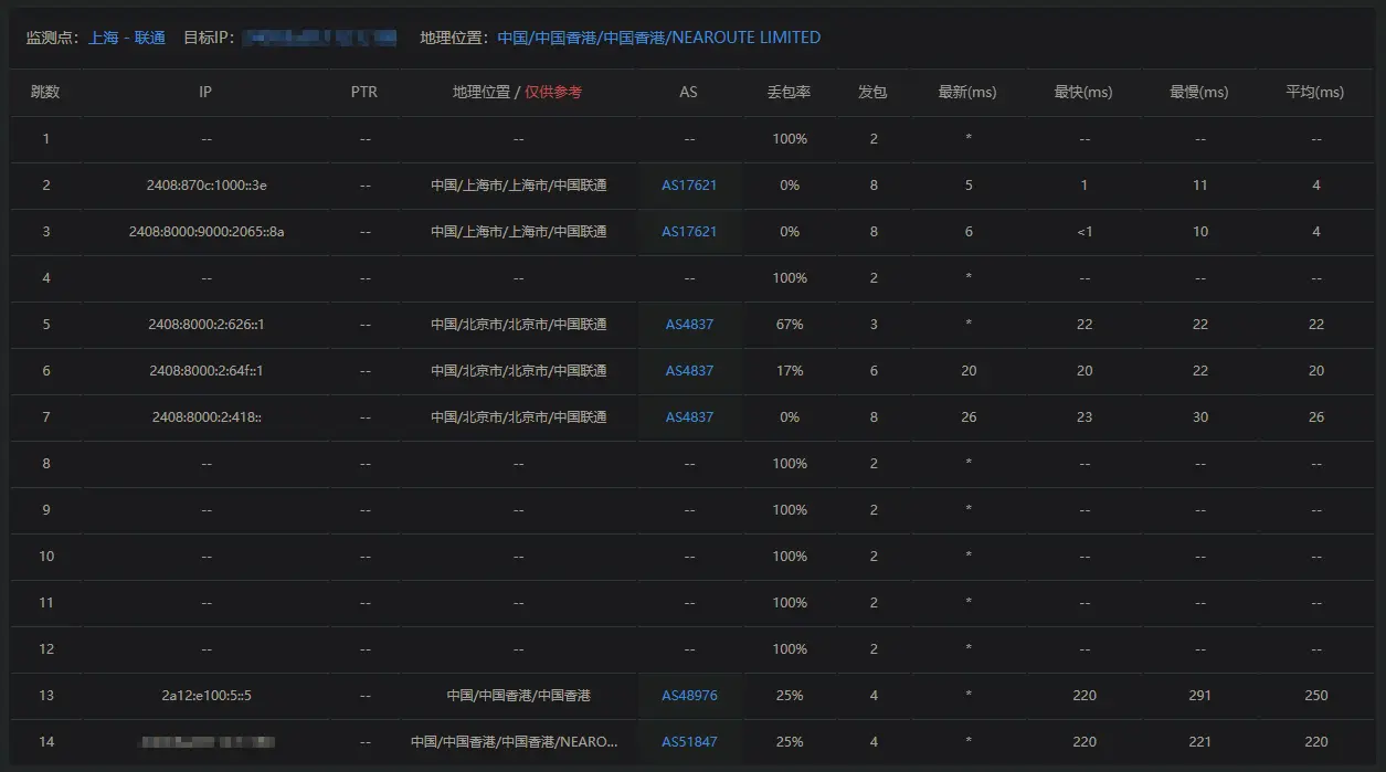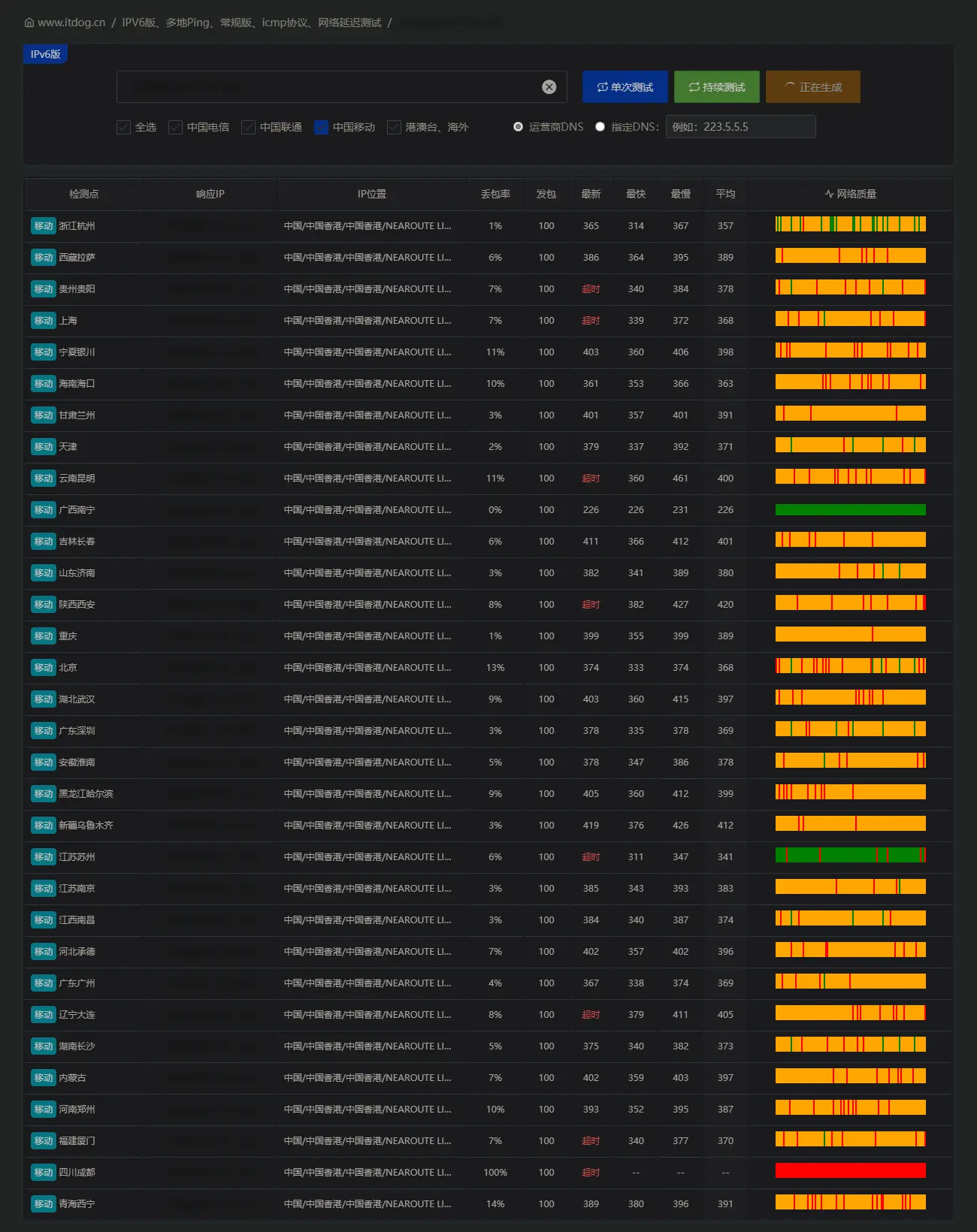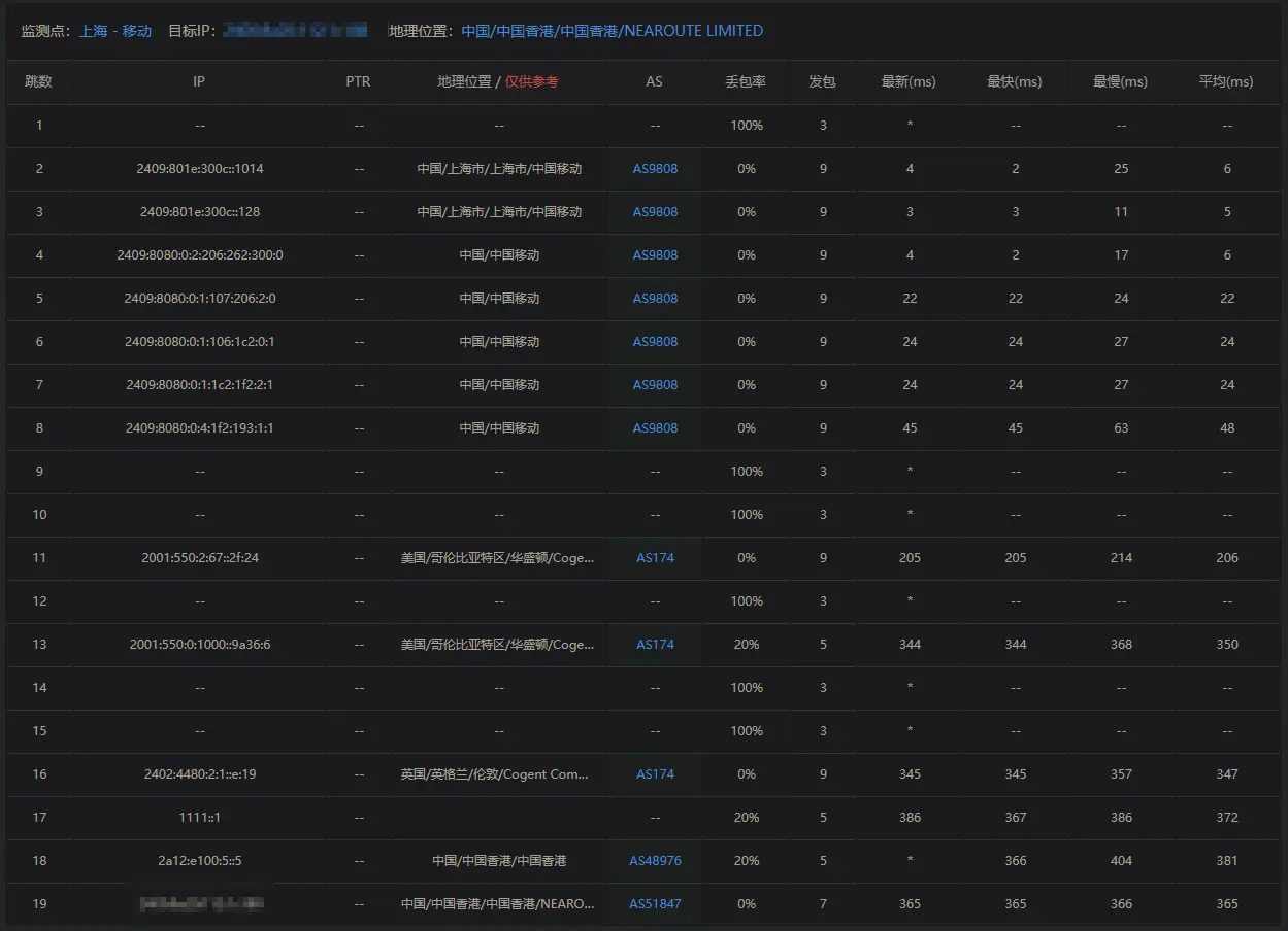 --------------------------------------IP质量检测-------------------------------------- 以下为各数据库编号,输出结果后将自带数据库来源对应的编号 ipinfo数据库 [0] | scamalytics数据库 [1] | virustotal数据库 [2] | abuseipdb数据库 [3] | ip2location数据库 [4] ip-api数据库 [5] | ipwhois数据库 [6] | ipregistry数据库 [7] | ipdata数据库 [8] | db-ip数据库 [9] ipapiis数据库 [A] | ipapicom数据库 [B] | bigdatacloud数据库 [C] | cheervision数据库 [D] | ipqualityscore数据库 [E] IPV4: 安全得分: 声誉(越高越好): 0 [2] 信任得分(越高越好): 100 [8] VPN得分(越低越好): 0 [8] 代理得分(越低越好): 0 [8] 社区投票-无害: 0 [2] 社区投票-恶意: 0 [2] 威胁得分(越低越好): 0 [8] 欺诈得分(越低越好): 28 [1] 99 [E] 滥用得分(越低越好): 0 [3] ASN滥用得分(越低越好): 0.0023 (Low) [A] 公司滥用得分(越低越好): 0.0046 (Low) [A] 威胁级别: low [9] 黑名单记录统计:(有多少黑名单网站有记录): 无害记录数: 0 [2] 恶意记录数: 0 [2] 可疑记录数: 0 [2] 无记录数: 94 [2] 安全信息: 使用类型: DataCenter/WebHosting/Transit [3] hosting [0 7 8 9 A] unknown [C] 公司类型: hosting [0 7 A] 是否云提供商: Yes [7 D] 是否数据中心: Yes [0 1 6 8 A] No [5 C] 是否移动设备: Yes [E] No [5 A C] 是否代理: Yes [5 E] No [0 1 4 6 7 8 9 A C D] 是否VPN: No [1 6 7 A C D] Yes [0 E] 是否TorExit: No [1 7 D] 是否Tor出口: No [1 7 D] 是否网络爬虫: No [9 A E] 是否匿名: No [1 6 7 8 D] 是否攻击者: No [7 8 D] 是否滥用者: Yes [E] No [7 8 A C D] 是否威胁: No [7 8 C D] 是否中继: No [0 7 8 C D] 是否Bogon: No [7 8 A C D] 是否机器人: Yes [E] DNS-黑名单: 313(Total_Check) 0(Clean) 7(Blacklisted) 25(Other) IPV6: 安全得分: 欺诈得分(越低越好): 0 [1] 滥用得分(越低越好): 0 [3] ASN滥用得分(越低越好): 0.0011 (Low) [A] 公司滥用得分(越低越好): 0 (Very Low) [A] 安全信息: 使用类型: business [A] DataCenter/WebHosting/Transit [3] 公司类型: business [A] 是否云提供商: Yes [D] 是否数据中心: Yes [1] No [A] 是否移动设备: No [A] 是否代理: No [1 A D] 是否VPN: No [1 A D] 是否Tor: No [1 3 A D] 是否Tor出口: No [1 D] 是否网络爬虫: No [A] 是否匿名: No [1 D] 是否攻击者: No [D] 是否滥用者: No [A D] 是否威胁: No [D] 是否中继: No [D] 是否Bogon: No [A D] DNS-黑名单: 313(Total_Check) 0(Clean) 0(Blacklisted) 313(Other) -------------------------------------三网回程线路检测------------------------------------- 北京电信v4 219.141.140.10 检测不到回程路由节点的IPV4地址 北京联通v4 202.106.195.68 联通4837 [普通线路] 北京移动v4 221.179.155.161 移动CMI [普通线路] 上海电信v4 202.96.209.133 电信163 [普通线路] 上海联通v4 210.22.97.1 联通4837 [普通线路] 上海移动v4 211.136.112.200 移动CMI [普通线路] 广州电信v4 58.60.188.222 电信163 [普通线路] 广州联通v4 210.21.196.6 联通4837 [普通线路] 广州移动v4 120.196.165.24 移动CMI [普通线路] 成都电信v4 61.139.2.69 电信163 [普通线路] 成都联通v4 119.6.6.6 联通4837 [普通线路] 成都移动v4 211.137.96.205 移动CMI [普通线路] 北京电信v6 2400:89c0:1053:3::69 电信163 [普通线路] 北京联通v6 2400:89c0:1013:3::54 联通4837 [普通线路] 北京移动v6 2409:8c00:8421:1303::55 移动CMIN2 [精品线路] 移动CMI [普通线路] 上海电信v6 240e:e1:aa00:4000::24 电信163 [普通线路] 上海联通v6 2408:80f1:21:5003::a 联通4837 [普通线路] 上海移动v6 2409:8c1e:75b0:3003::26 移动CMI [普通线路] 广州电信v6 240e:97c:2f:3000::44 电信163 [普通线路] 广州联通v6 2408:8756:f50:1001::c 联通4837 [普通线路] 广州移动v6 2409:8c54:871:1001::12 移动CMIN2 [精品线路] -------------------------------------三网回程路由检测------------------------------------- 广州电信 - ICMP v4 - traceroute to 58.60.188.222, 30 hops max, 52 byte packets 2.78 ms AS13335 [CLOUDFLARENET] 美国, 佐治亚州, 亚特兰大, cloudflare.com 1.42 ms AS13335 [CLOUDFLARENET] 巴西, 里约热内卢州, 里约热内卢, cloudflare.com 2.54 ms AS13335 [CLOUDFLARE-AP] 中国, 香港, cloudflare.com 2.21 ms AS1299 [ARELION-NET] 中国, 香港, arelion.com 3.22 ms AS1299 [ARELION-NET] 中国, 香港, arelion.com 55.60 ms AS1299 [ARELION-NET] 日本, 东京都, 东京, arelion.com 148.42 ms AS1299 [ARELION-NET] 美国, 加利福尼亚, 洛杉矶, arelion.com 160.28 ms AS1299 [ARELION-NET] 美国, 加利福尼亚, 洛杉矶, arelion.com 149.00 ms AS1299 [ARELION-NET] 美国, 加利福尼亚, 洛杉矶, arelion.com * 305.51 ms AS4134 [CHINANET-BB] 中国, 广东, 广州, www.chinatelecom.com.cn 电信 316.04 ms AS4134 [CHINANET-BB] 中国, 广东, 广州, www.chinatelecom.com.cn 电信 * * 311.47 ms AS4134 中国, 广东, 深圳, www.chinatelecom.com.cn 电信 广州联通 - ICMP v4 - traceroute to 210.21.196.6, 30 hops max, 52 byte packets 2.41 ms AS13335 [CLOUDFLARENET] 美国, 佐治亚州, 亚特兰大, cloudflare.com 1.34 ms AS13335 [CLOUDFLARENET] 巴西, 里约热内卢州, 里约热内卢, cloudflare.com 2.42 ms AS13335 [CLOUDFLARE-AP] 中国, 香港, cloudflare.com 2.04 ms AS1299 [TELIANET] 中国, 香港, arelion.com 2.49 ms AS1299 [ARELION-NET] 中国, 香港, arelion.com 50.79 ms AS1299 [ARELION-NET] 日本, 东京都, 东京, arelion.com 148.12 ms AS1299 [ARELION-NET] 美国, 加利福尼亚, 洛杉矶, arelion.com * 322.61 ms AS1299 美国, 加利福尼亚, 洛杉矶, arelion.com 329.54 ms AS4837 [CU169-BACKBONE] 中国, 北京, chinaunicom.cn 联通 328.26 ms AS4837 [CU169-BACKBONE] 中国, 北京, chinaunicom.cn 联通 363.31 ms AS4837 [CU169-BACKBONE] 中国, 北京, chinaunicom.cn 联通 * 326.09 ms AS17816 [UNICOM-GD] 中国, 广东, 深圳, chinaunicom.cn 联通 328.05 ms AS17623 [APNIC-AP] 中国, 广东, 深圳, chinaunicom.cn 联通 317.46 ms AS17623 中
